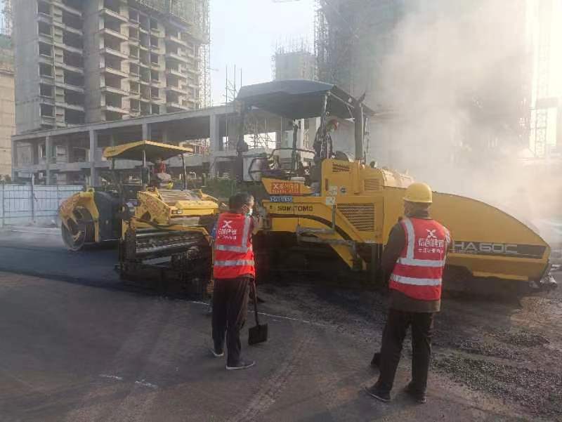 鄭州鄭平路瀝青攤鋪現(xiàn)場